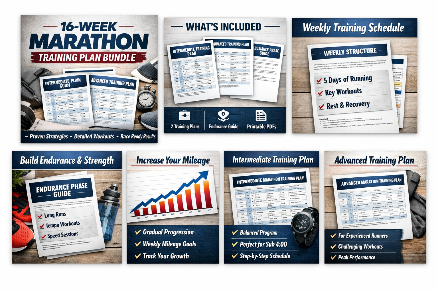 - 16-week structured marathon training plan